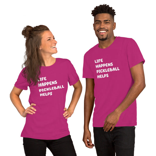 "Life Happens, Pickleball Helps" Unisex T-Shirt